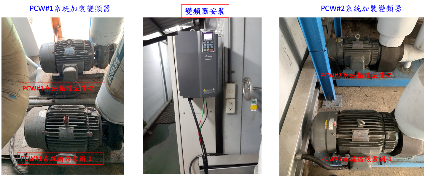另外亦針對廠內PCW系統循環泵浦加裝變頻器以達節能效果,經驗證其節能效果顯著達80%。