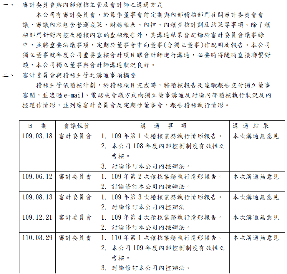 3.公司內部稽核人員秉持超然獨立之精神,以客觀公正之立場,確實執行其職務,盡專業上應有之注意,定期向獨立董事報告稽核業務外,稽核主管並列席董事會報告。